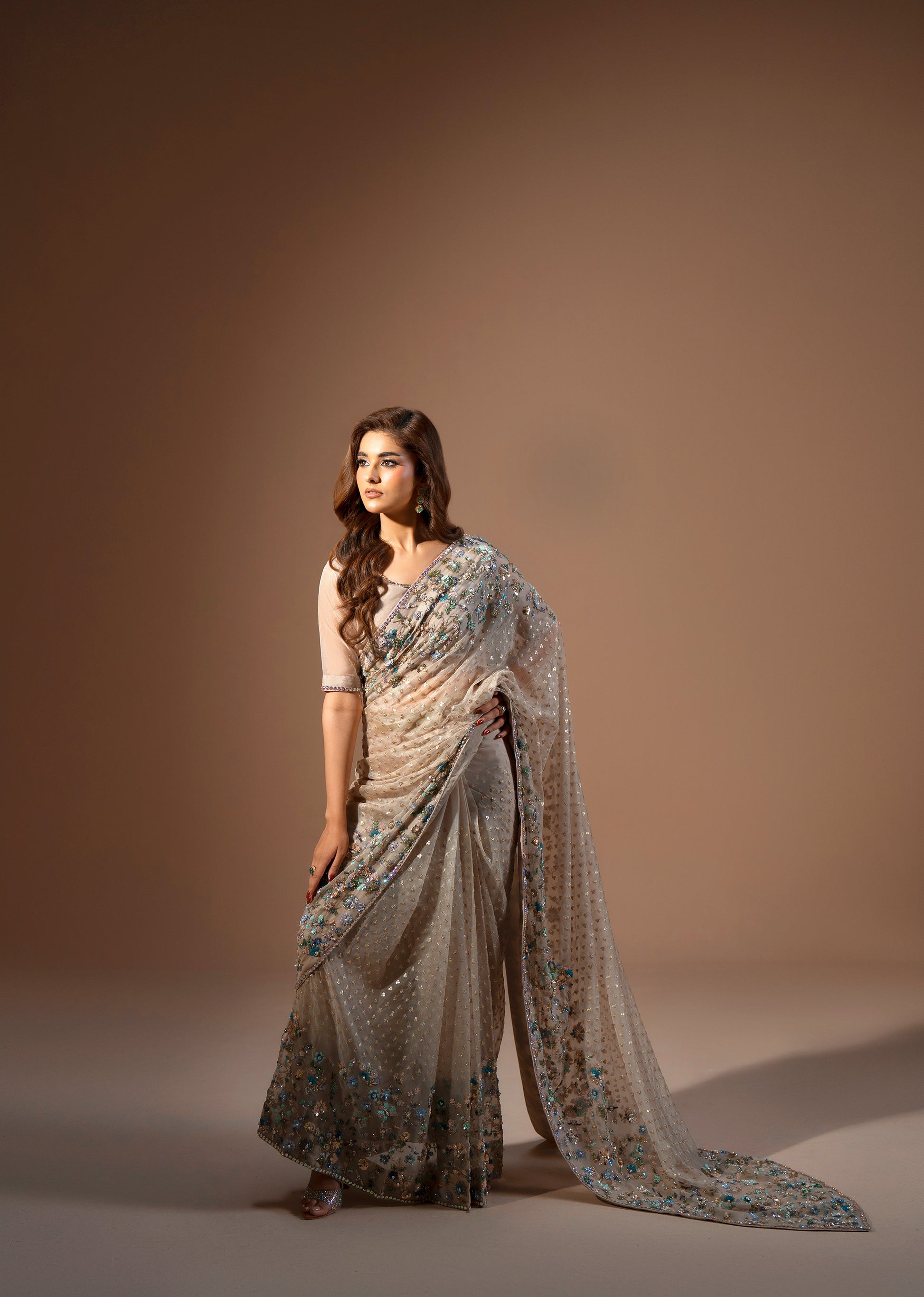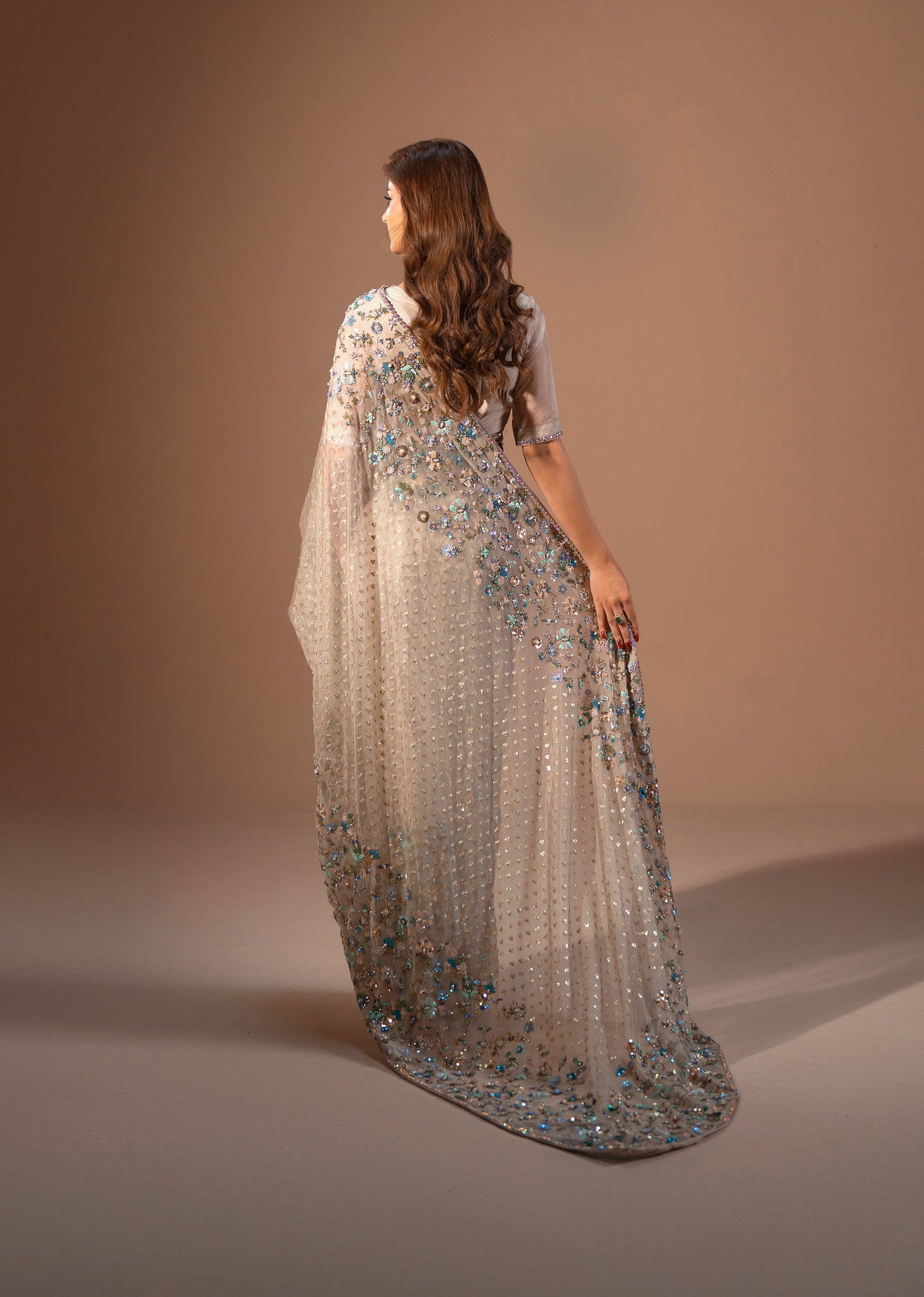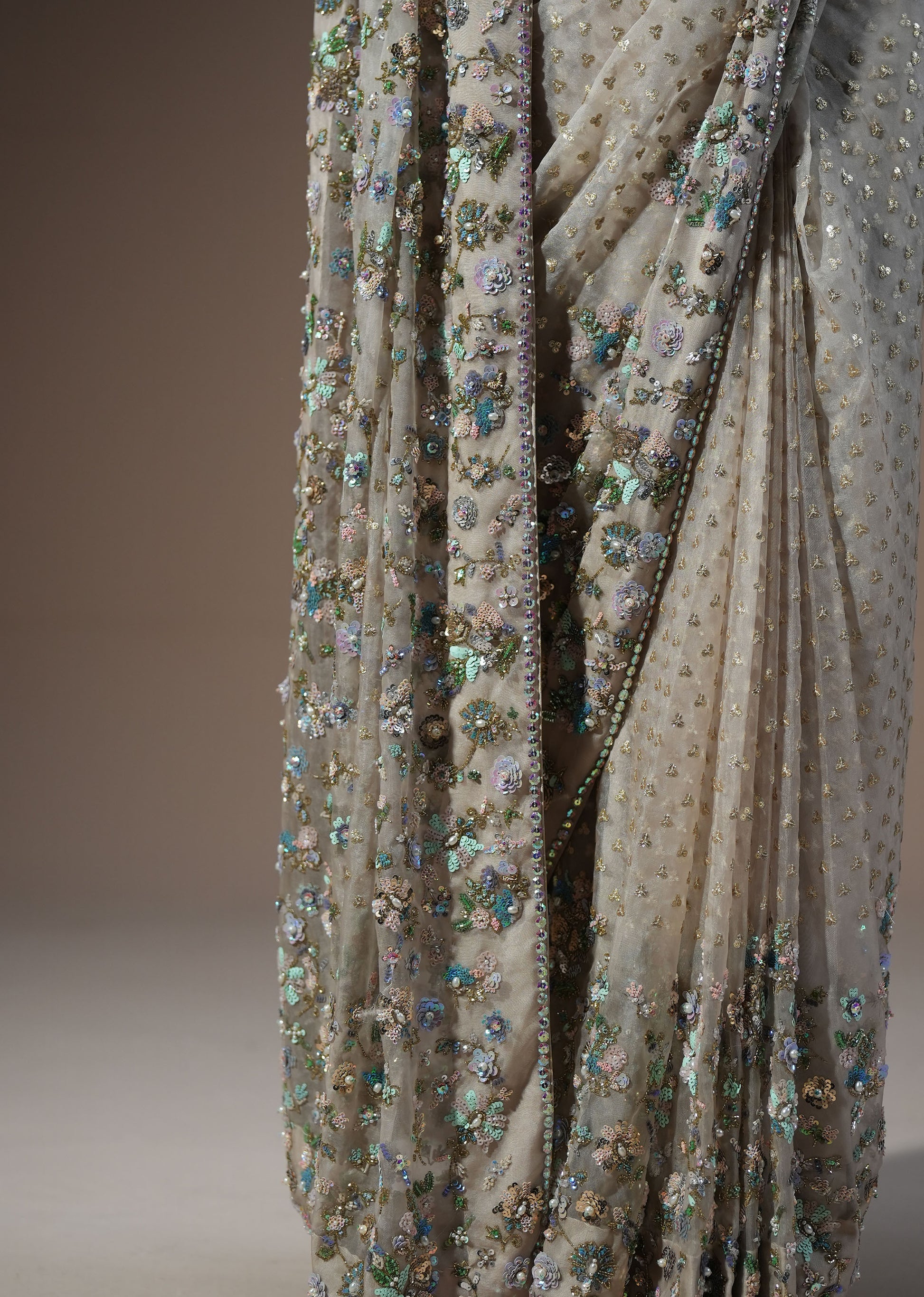 Elevate your ethnic wardrobe with this exquisite Silk Tissue Saree, a true celebration of Indian craftsmanship. Completely handmade, this saree showcases very intricate handwork, reflecting hours of skilled artistry. Adorned with multi-sequence embellishments and traditional Indian cutdana work, it shimmers beautifully with every movement. The rich multi-color detailing adds depth and vibrancy, making it a perfect choice for weddings, festive occasions, and special celebrations.