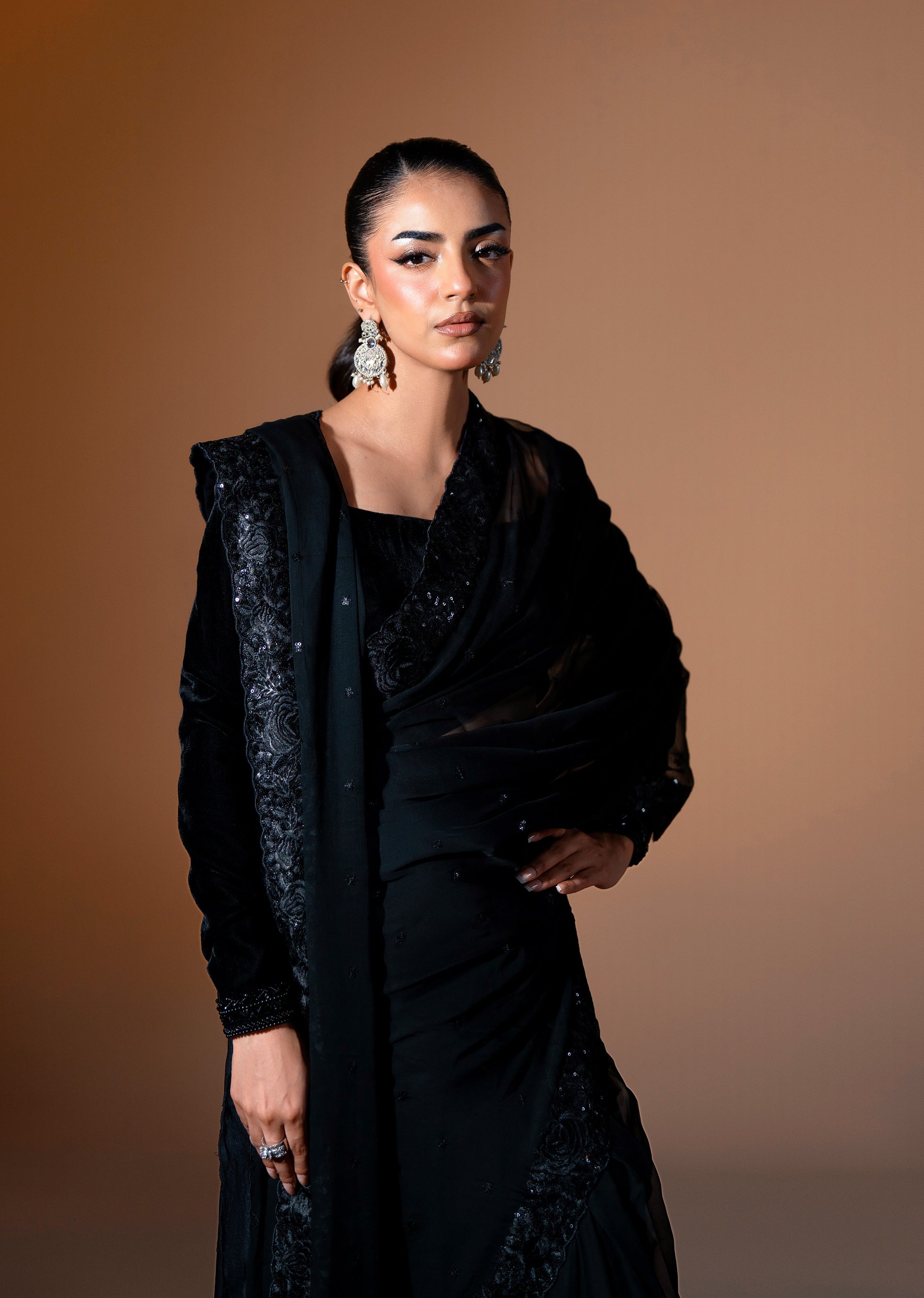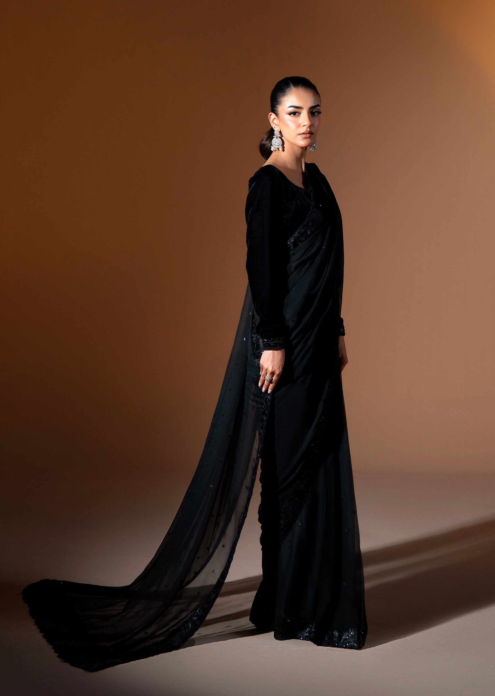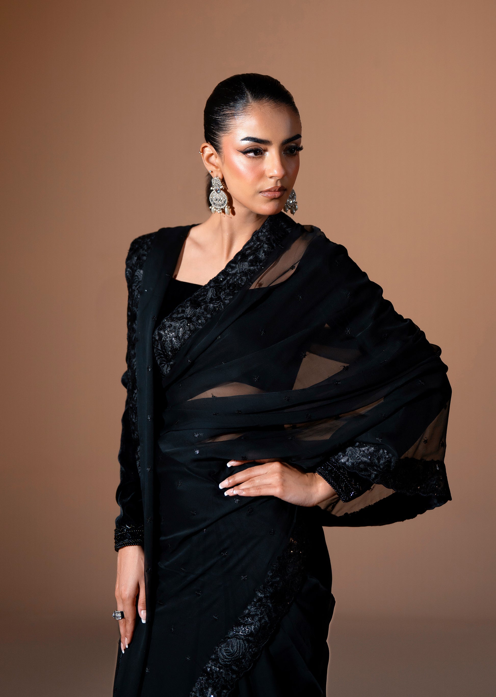 This graceful saree is crafted from a pure base chiffon fabric, offering a soft, lightweight texture with an elegant flow that drapes beautifully. The airy chiffon base ensures all-day comfort while maintaining a refined and sophisticated look.